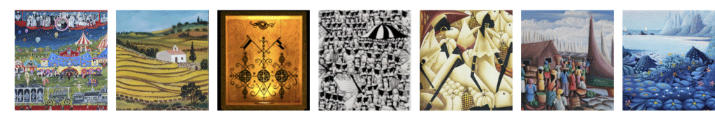 En nuestra galería, revelamos un reino artístico secreto donde los artistas encienden la imaginación y el asombro. Los pintores naif haitianos, conocidos por su ingenio y sus colores vibrantes, crean mundos oníricos inspirados en creencias vudú o católicas y en la armonía con la naturaleza.